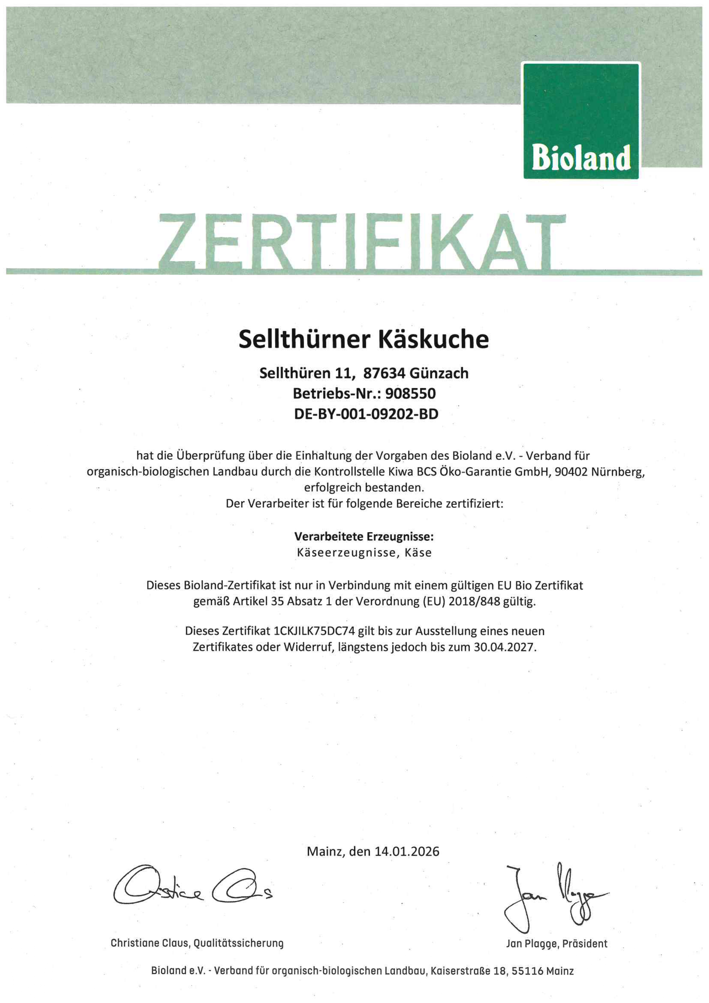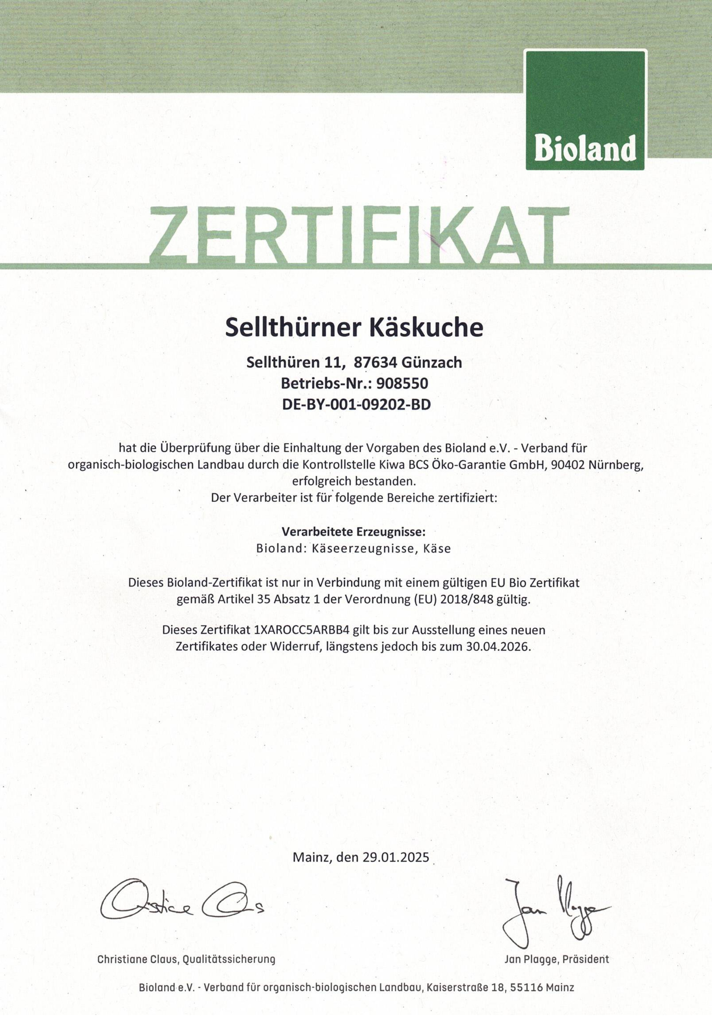 Bioland Zertifikat